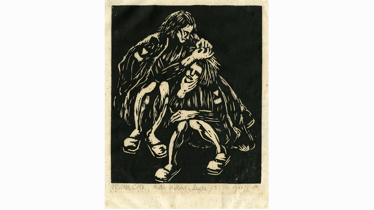 Življenje v taborišču je bilo zaznamovano z nenehnim nasiljem, ki ga je izvajalo vodstvo taborišča. Od sistematičnega nasilja, poniževalnih preiskav, neproduktivnega dela, katerega namen je bil zgolj izčrpavanje internirank, prisilnega dela do različnega fizičnega izživljanja. Cilj taborišča je bila degradacija človeškega življenja, popolno razčlovečenje jetnic. Lesorez V taborišču Cite Potokar, ki ga je podpisala “Motiv iz konc. Lagra”, je nastal tik po vojni, ko so bili spomini še zelo živi. Upodobljeni sta dve interniranki v taboriščnih oblačilih s trikotnimi oznakami, ki so izkazovale, kateri skupini ujetnic pripadajo, torej ali so bile zaprte zaradi verskega ali političnega prepričanja, nacionalne pripadnosti ipd. Sunkovite poteze ustvarjajo neko grobost, nakazujejo slabo stanje oblačil, utrujeno kožo in upadle obraze, na katerih se odraža preživeto trpljenje in slutnja vdanosti v usodo. Zlasti pri ženski na levi, ki ji druga ujetnica pregleduje lasišče. Interniranke so bile poleg nasilja in izživljanja podvržene tudi podhranjenosti in izjemno slabim higienskim razmeram, tako da so bili takšni pregledi pomembni za preživetje, hkrati pa so omogočali ohranjanje dostojanstva v krutih razmerah ter kažejo na skrb in povezanost sojetnic v nepredstavljivih okoliščinah, v katerih so se znašle.