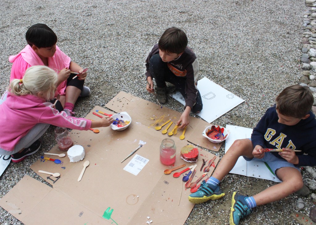 Zadnjo delavnico je vodila slikarka Mateja Kavčič, s katero smo na dvorišču sestavili veliko risbo iz palic in listov, ki smo jih nabrali v parku Forma viva. Motivi so se ob toplem poletnem dnevu navezovali na morje. Za zaključek so poskrbele udeleženke Urška, Zarja in Neža – pripravile so lov na sladko-osvežilni zaklad.