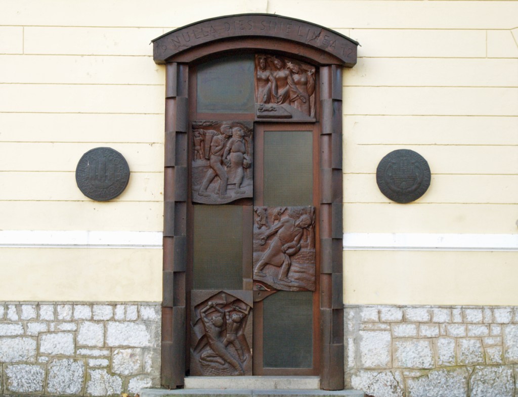Tone Kralj je že vse od leta 1971 pa do danes navzoč v življenju Kostanjevičanov na prav poseben način. Vsak učenec OŠ Jožeta Gorjupa vstopa v hram učenosti skozi vhodni leseni portal, ki ga je izdelal in šoli, v kateri je med pogostimi obiski Kostanjevice na Krki tudi bival, podaril umetnik. Nad vhod je Kralj postavil slogan NULLA DIES SINE LINEA, ki se v prevodu glasi »naj noben dan ne mine brez črte«, torej brez pisanja, brez osvajanja novega znanja. Vratni krili sta okrašeni s prizori kmečkih opravil v različnih letnih časih, rudarjev in upodobitvijo vil čestitk iz lokalne mitologije.