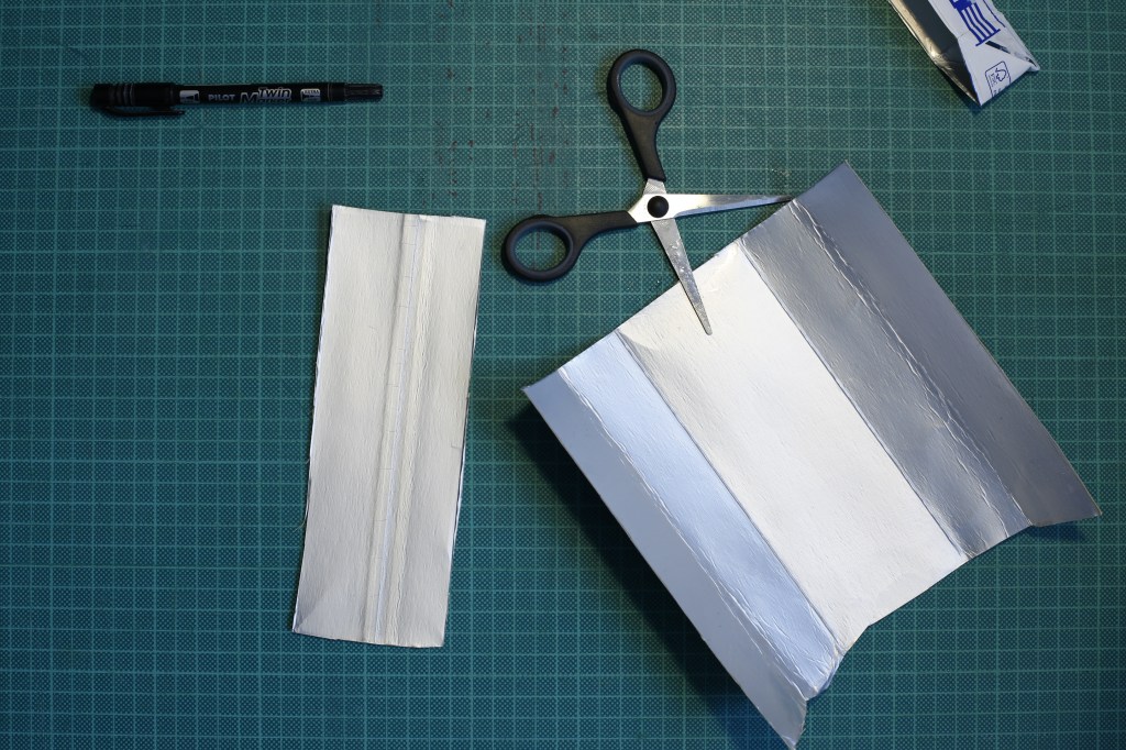 Enostavna ideja za izdelavo voščilnic je osnovana z misiljo na ponovno uporabo odsluženega materiala. Srebrna notranjost tetrapaka je namreč kot nalašč za novoletni čas. Za izdelavo voščilnic poleg praznega tetrapaka potrebuješ samo še nekaj osnovnih šolskih / pisarniških pripomočkov.