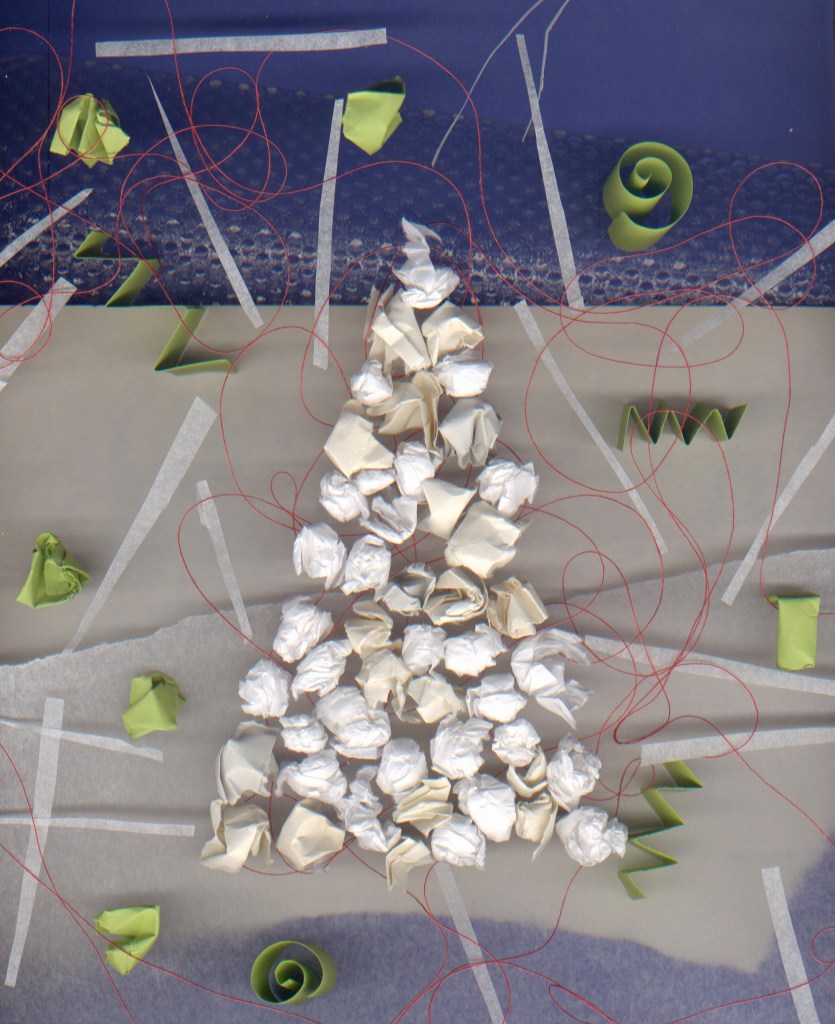 Uporabimo lahko materiale, ki različno prepuščajo svetlobo. Zanimive učinke dosežemo s prekrivanjem in nalaganjem različnih različnih vrst papirja kot bi sestavljali kolaž (uporabimo lahko paus ali peki papir, različne specialne papirje in folije, karton, izrezke iz časopisnega papirja, …).