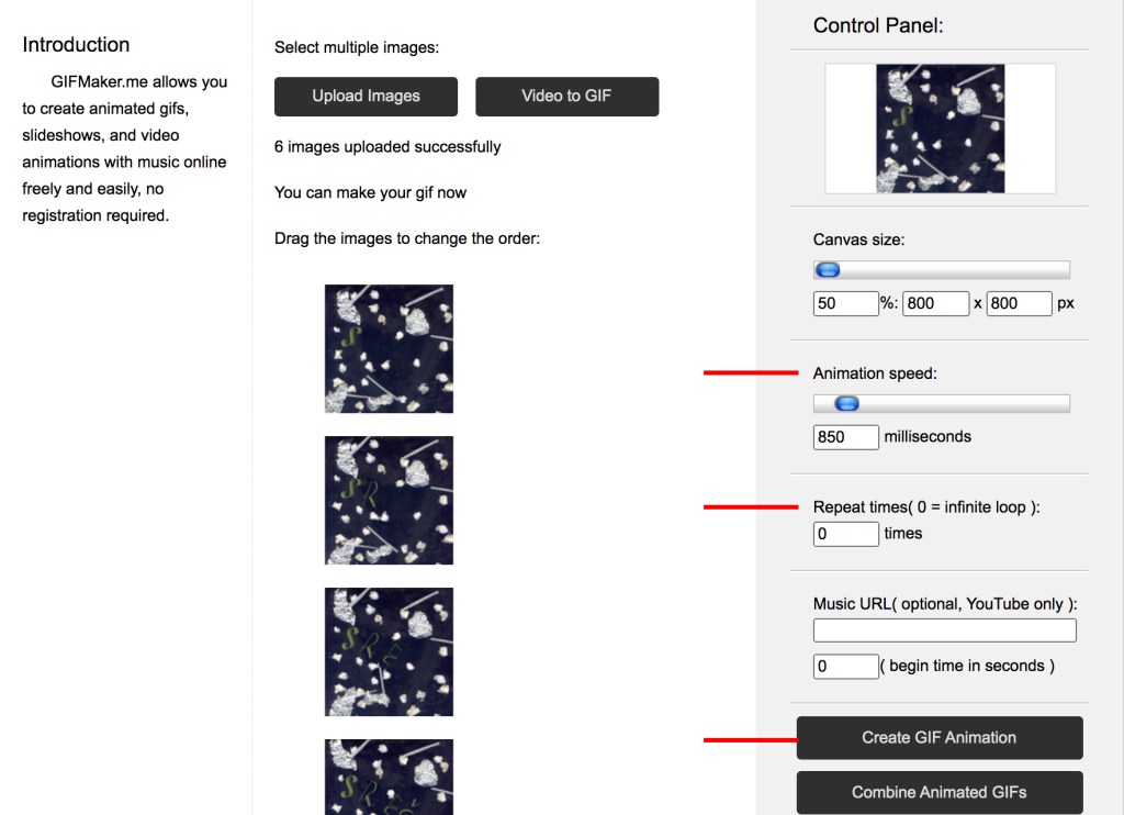 Postopek skenografije je lahko tudi izhodišče za izdelavo enostavne animacije. Zamislimo si scenarij in poskeniramo vsak željeni premik. Fotografije morajo biti poimenovane oz. oštevilčene v vrstnem redu kot ga želimo imeti v animaciji. Na spletu poiščemo stran, ki omogoča izdelavo videa v formatu GIF (npr. http://www.gifmaker.me). Naložimo fotografije, izberemo hitrost premikanja (animation speed) in določimo kolikokrat želimo, da se animacija ponovi (repeat times, 0 = ponavljanje v neskončnost). Izvozimo v format gif in tako ustvarimo enostavno animacijo.