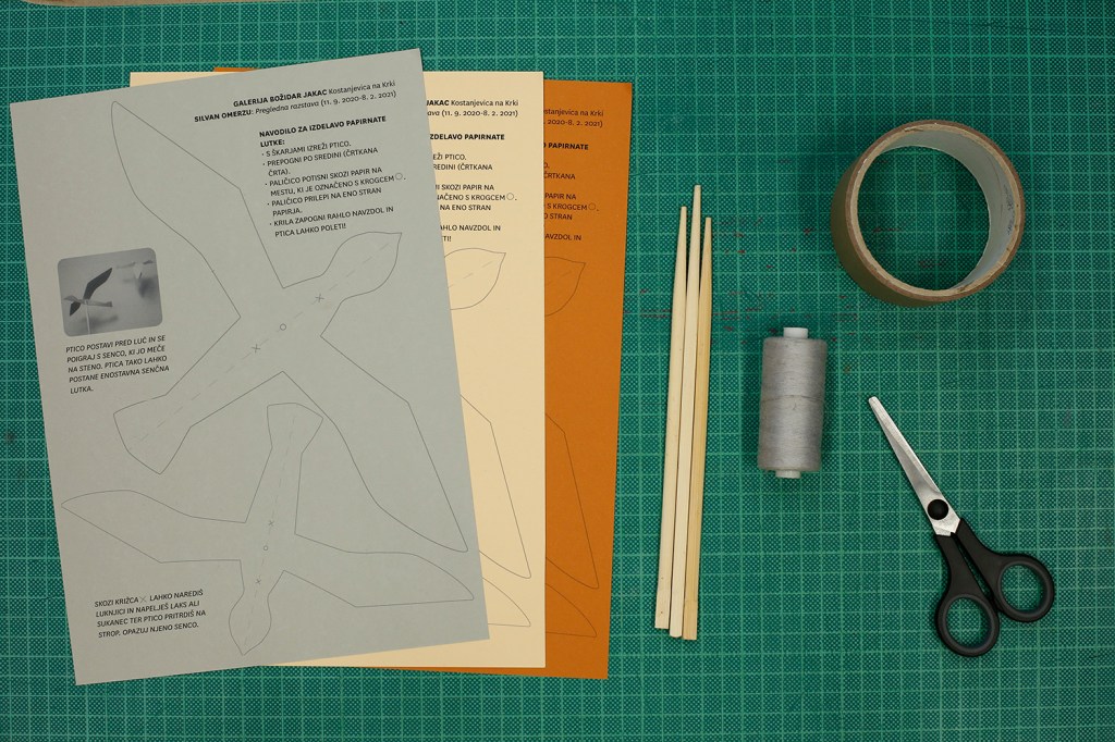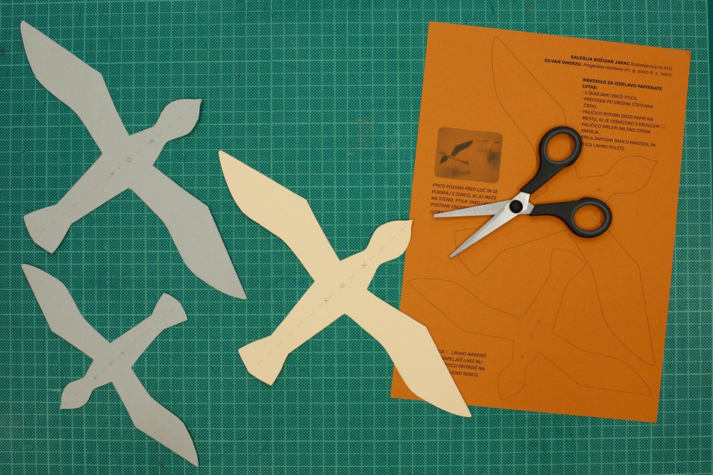 Ob razstavi Silvana Omerzuja je nastala GBJ ustvarjalnica v kateri predstavljamo navodila za izdelavo ptice iz papirja na dva načina – kot lutka na palici in preprost avtomat, pri katerem bo gibanje ptice omogočala ščipalka. Ustvarjalnica je primerna za skupno ustvarjanje otrok in odraslih.