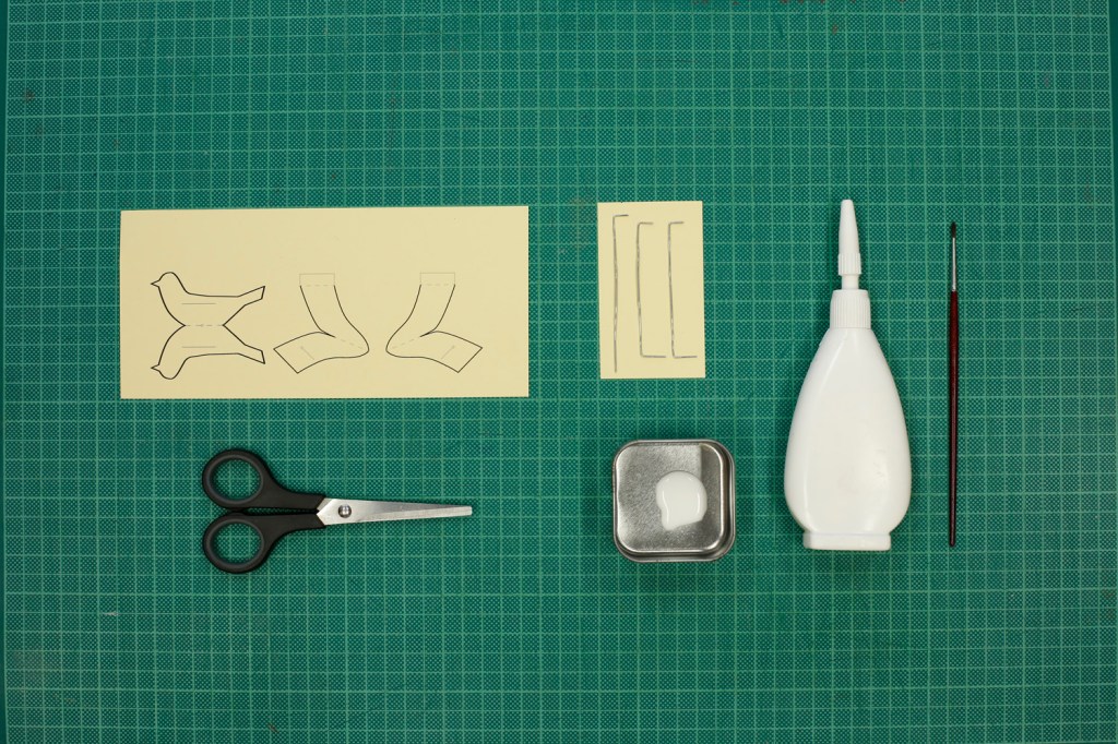 - predloga ptice z navodili natisnjena na trši papir (130 g/m2)