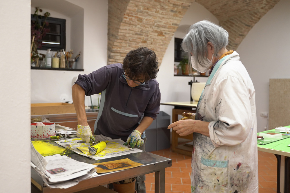 Dolgoletnim udeleženkam Ljiljani Čuček, Petri Kampl Petrin, Tadeji Kajzar Trajkovski, Tanji Plevnik in Alenki Venišnik so se letos pridružile še Maja Šušteršič, Nina Umek Lovrić, Milena Volk in najmlajša udeleženka Klara Lovrić. Mentorica je ob zaključku skupaj z udeleženkami pripravila izbor najboljših odtisov, ki bo do konca junija predstavljen v pedagoških prostorih galerije.