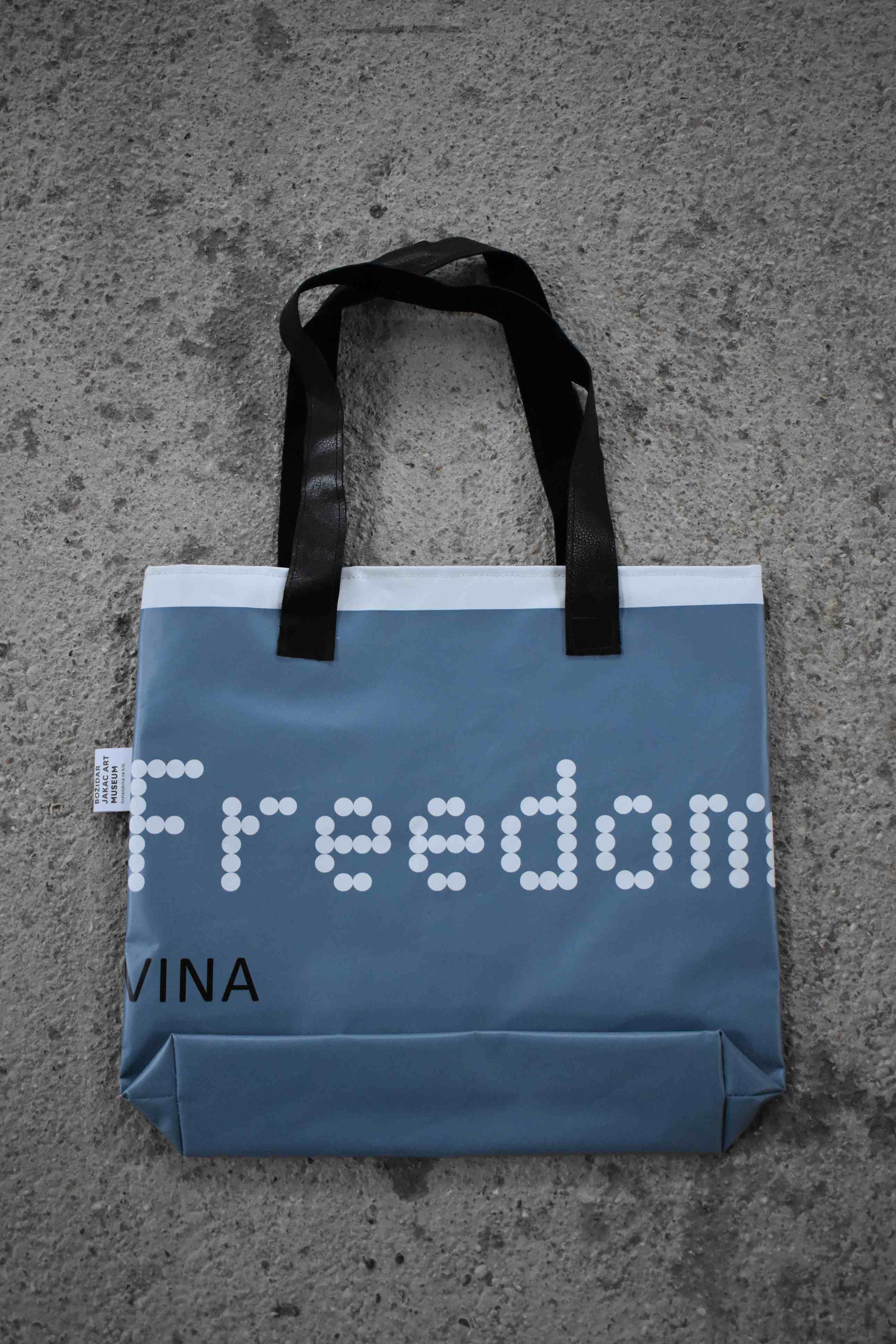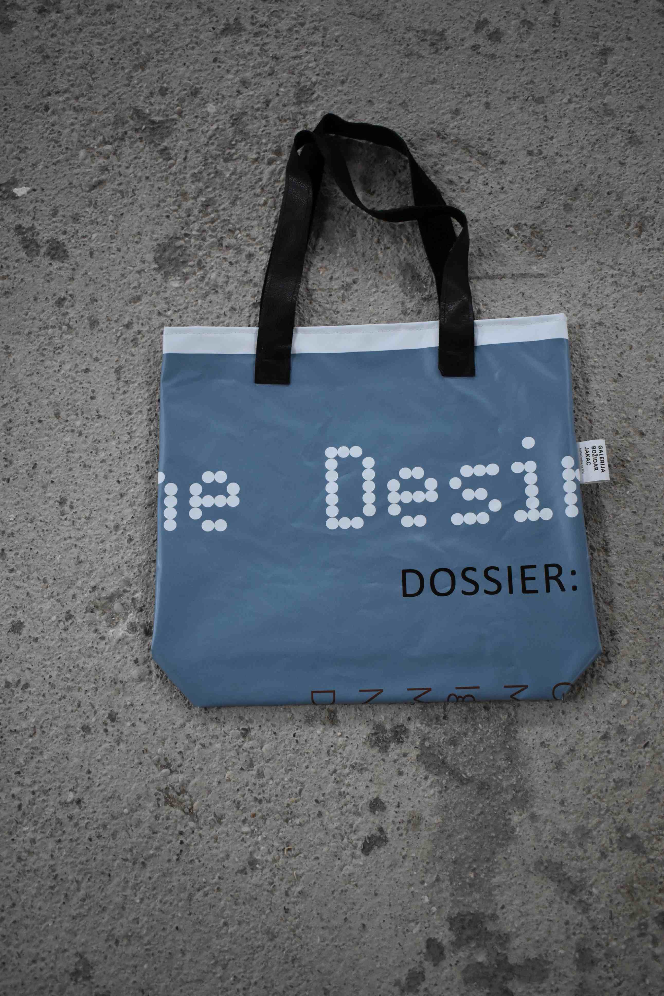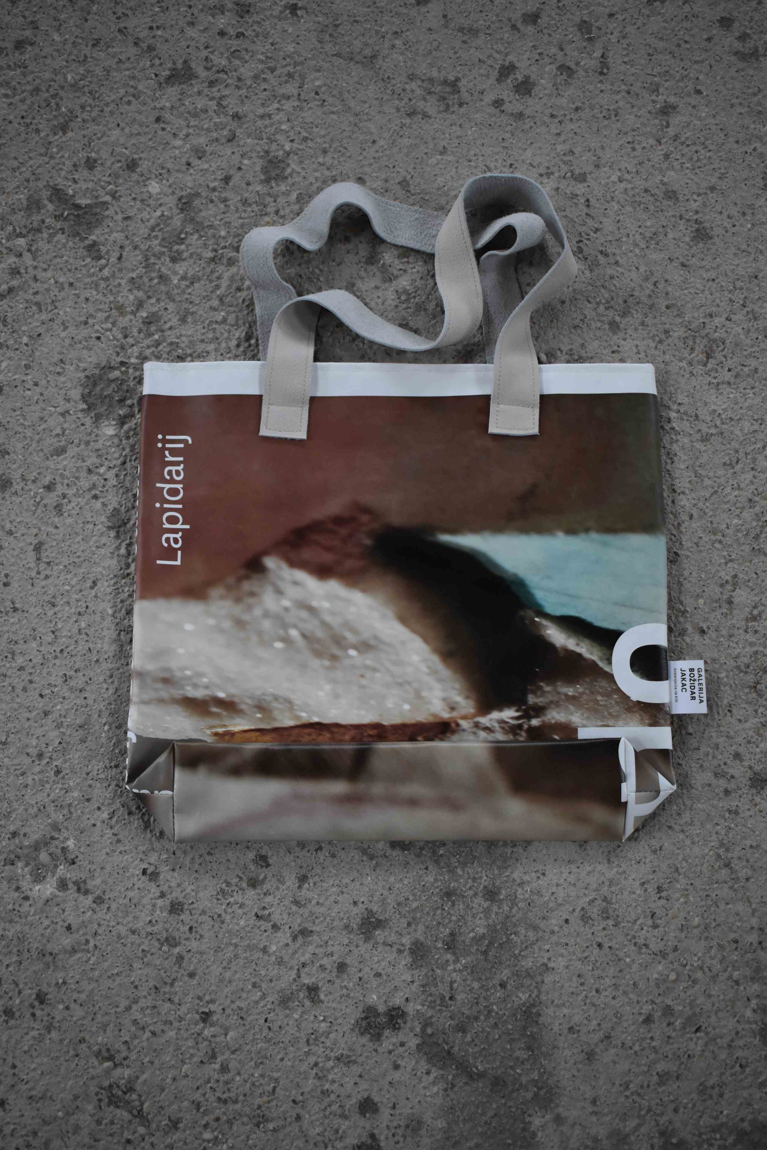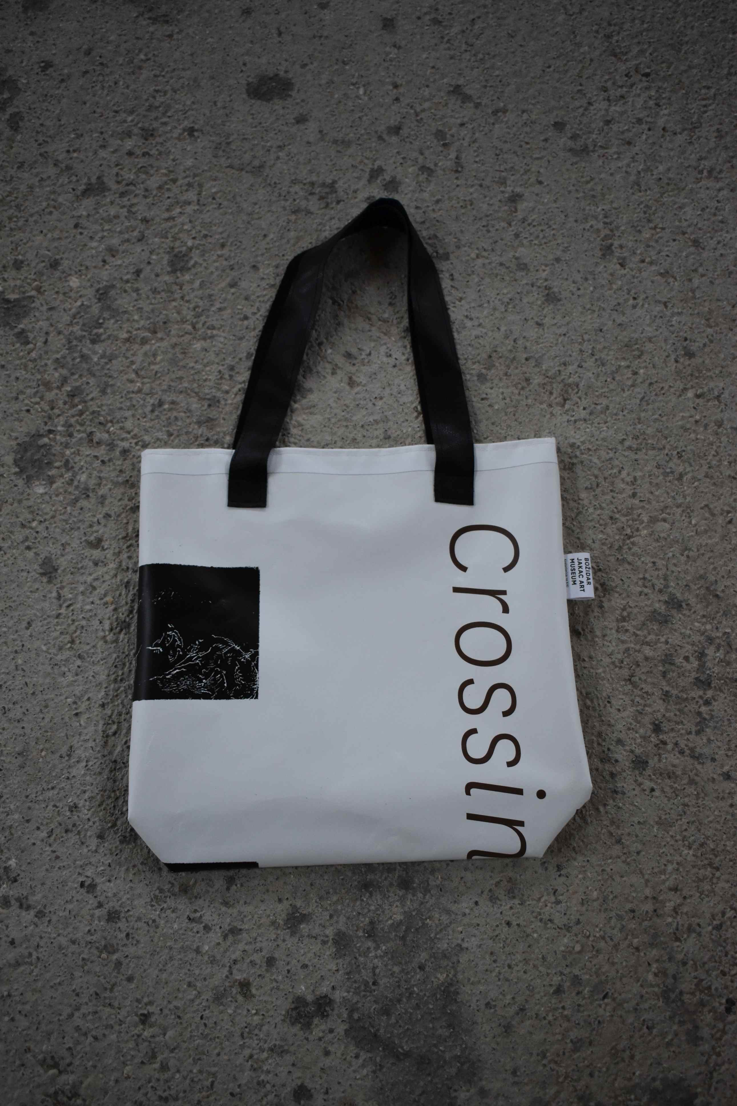 Torbe so izdelane iz recikliranih panojev, ki napovedujejo občasne razstave. Torbe so v dveh velikostih, vendar je razlika minimalna.